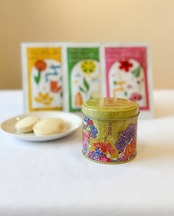 沖縄紅型を使った美しい缶は、華やかな印象を与え贈り物にぴったり。お茶と共に楽しむことで、沖縄の風情を感じられます。